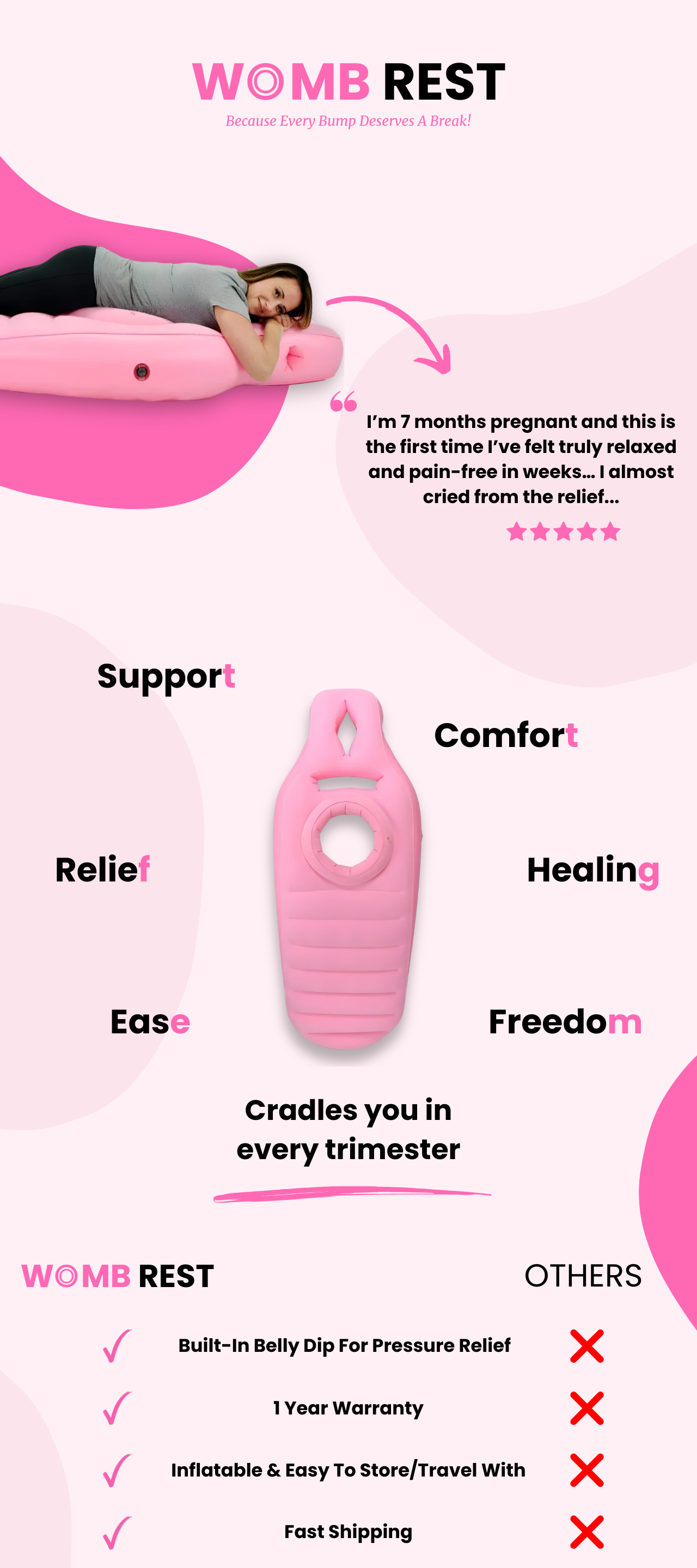 For the first time in months, you can finally lie on your front. This cozy, inflatable bed gently supports your bump, eases back pain, and gives your body the break it’s been craving.